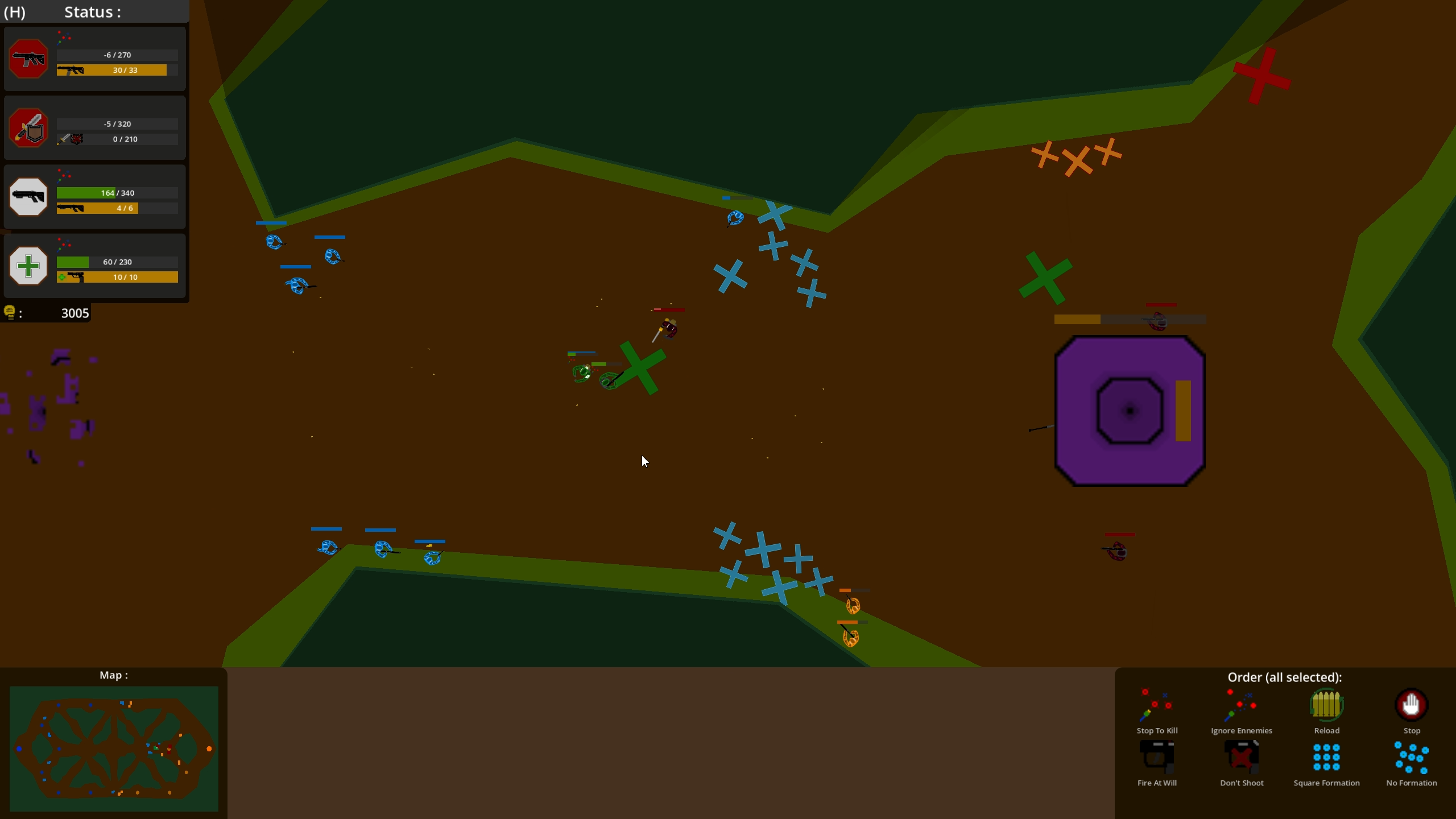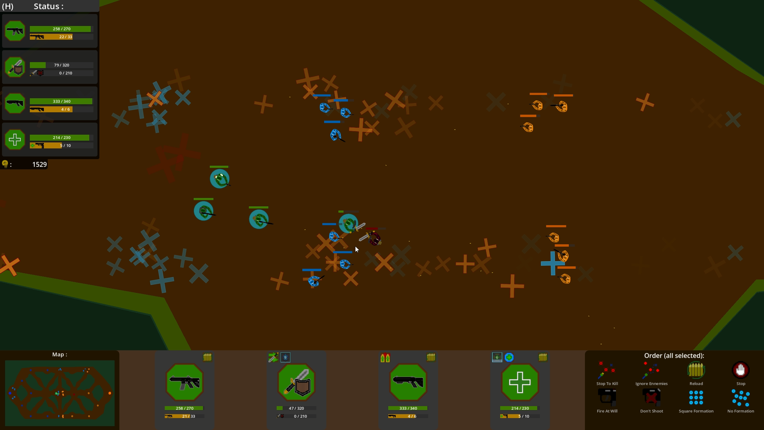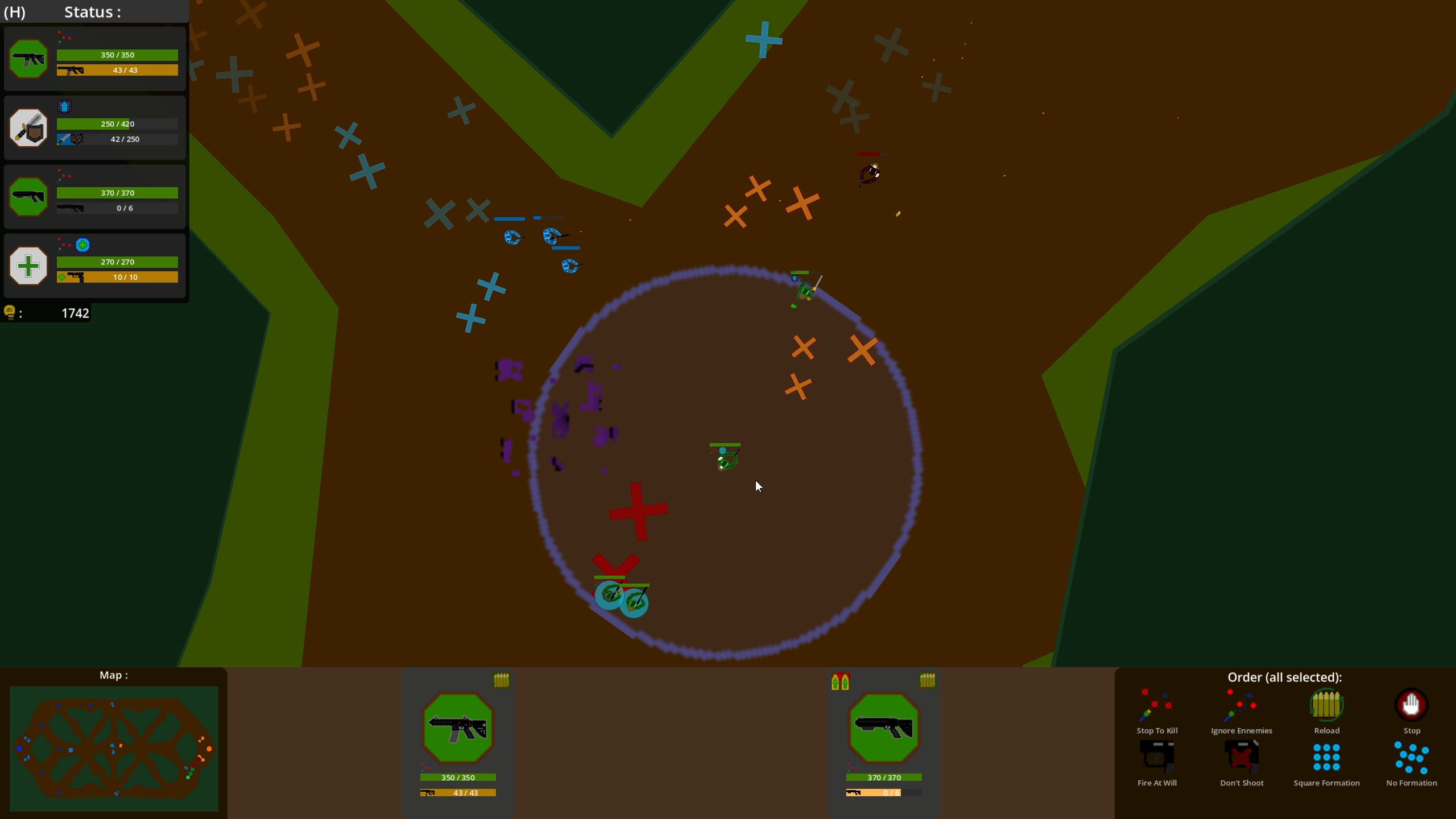 - Battle Zone : you have 4 soldiers, that you can upgrade to get them stronger. Unfortunatly the ennemy have acess to the same things as you. Win this battle by having a better strategy, or simply by having a beter team.