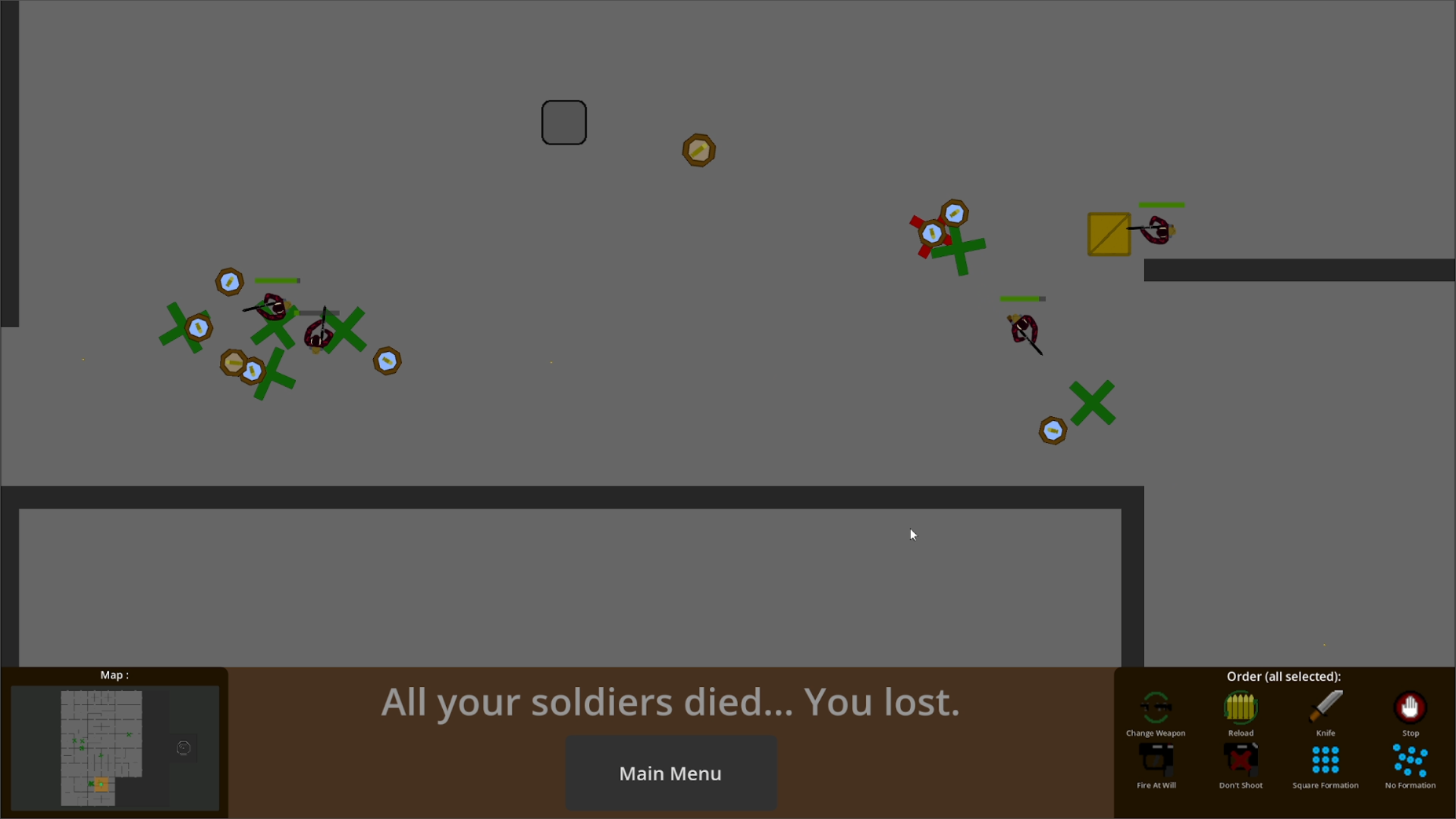 In Stratander you're a new commander, in charge of a small team (or big if you customise numbers) and you have to make them escape the ennemy base they're in. Use all the tactics you can to help your soldiers, make them hide and wait for an unaware ennemy, attack a group with a pincer attack, or just go in blindly.